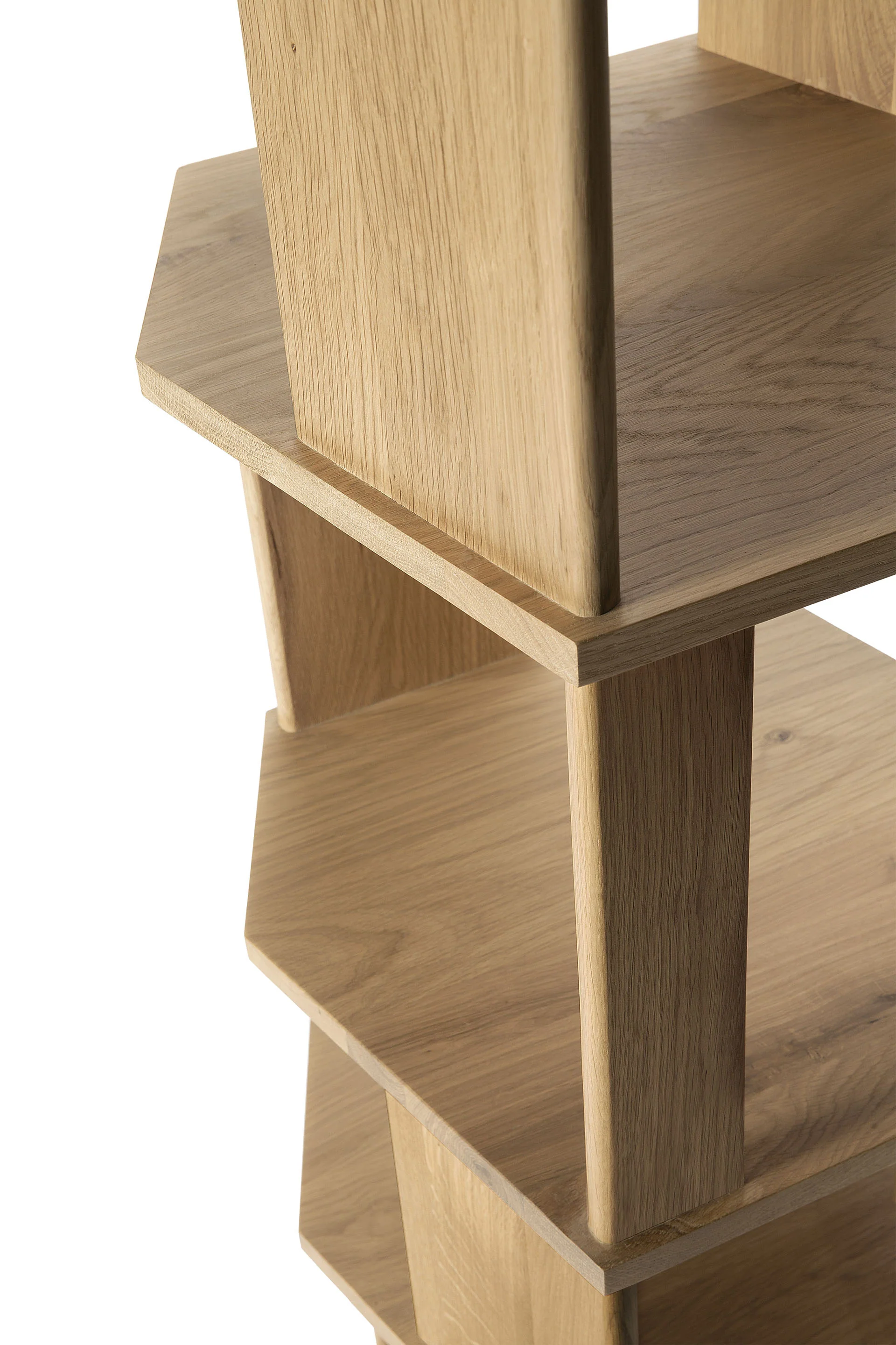 An angular composition, designed by Alain van Havre, forms the heart of a design that aims to distance itself from traditional static and immobile surfaces. By perfectly aligning multiple angles, a unique sense of volume is created. When we then add light to the equation, the multi-faceted oak canvas creates even more depth by casting shadows.