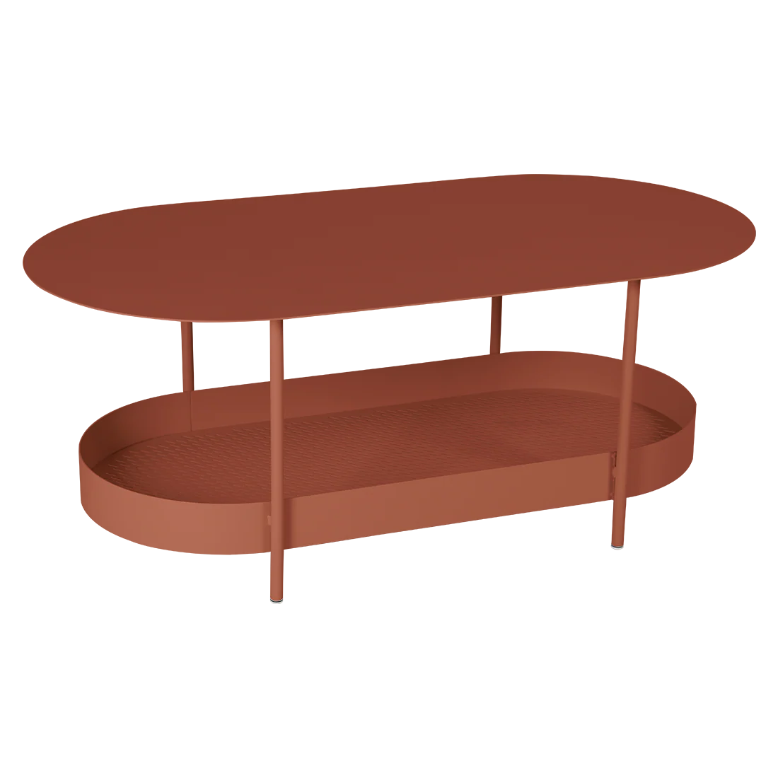 If you’ve always dreamed of a owning a distinctive piece of designer furniture that makes an instant impression, then look no further! With its unique oblong shape inspired by the modernist and Bauhaus movements, and its integrated storage basket, the Salsa low table hits all the right notes. Its eye-catching appeal is the work of Spanish studio Goula & Figuera. And it’ll have any space – indoors or outdoors – dancing to its tune! Salsa is a metal low table packed with clever features. The table top, fashioned from sheet metal with a straight edge, is perfect for storing newspapers, magazines and a few candles – and drinks and nibbles when you’re entertaining guests. Meanwhile, the storage basket is the ideal place to store bottles or plants – with head-turning impact! Whoever said beautiful couldn’t be practical? But that’s not all: its lightweight build and silencing pads make it super easy to move around without making a sound. And because it comes with an anti-UV polyester powder coating, it can withstand whatever the weather throws at it. The lower table top features cleverly designed perforations that allow rainwater to pass through – and provide all-important drainage if you’ve stored plants there – and is incredibly easy to clean. The Salsa low table is the ideal companion to the side table from the same collection: the oblong and round table tops are designed to look great together and show off the range’s best features! Still need convincing? Then how about the fact that it’s made at Fermob’s workshops in Thoissey, right here in France? Dreaming of a colourful, designer metal low table? Then Fermob has just the thing for you! All that remains is for you to select the shade that best suits your setting.