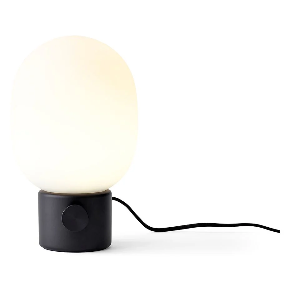 An instant classic, the JWDA Table Lamp is the kind of sculptural piece that brings new life to a room, illuminating a window sill, shelf or side table with its warm, glare-free glow. Inspired by traditional oil lamps, its contrast of rounded opal glass against a solid base creates a balanced and intriguing silhouette. The timeless indoor lamp is available in two marble types and red travertine stone, fitted with either a bronzed or brushed brass dimmer switch to control the light intensity.